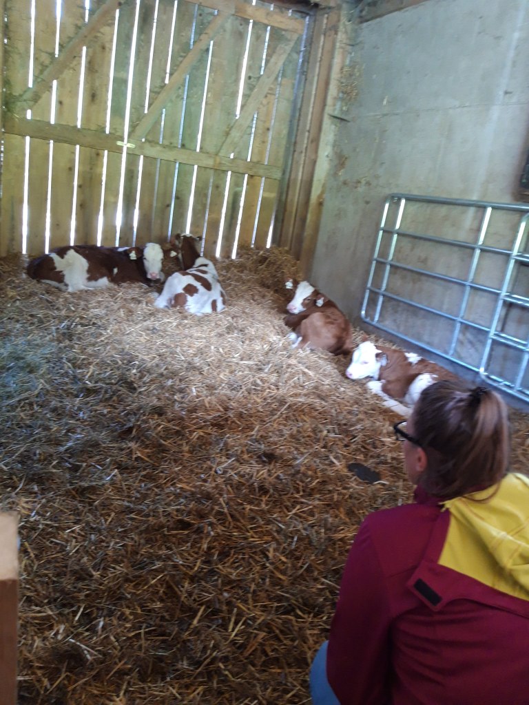 Es kann getobt und gekuschelt werden und v.a. für die künftigen Milchkühe ist unserer Meinung nach von Anfang an eine Sozialkompetenz wichtig.